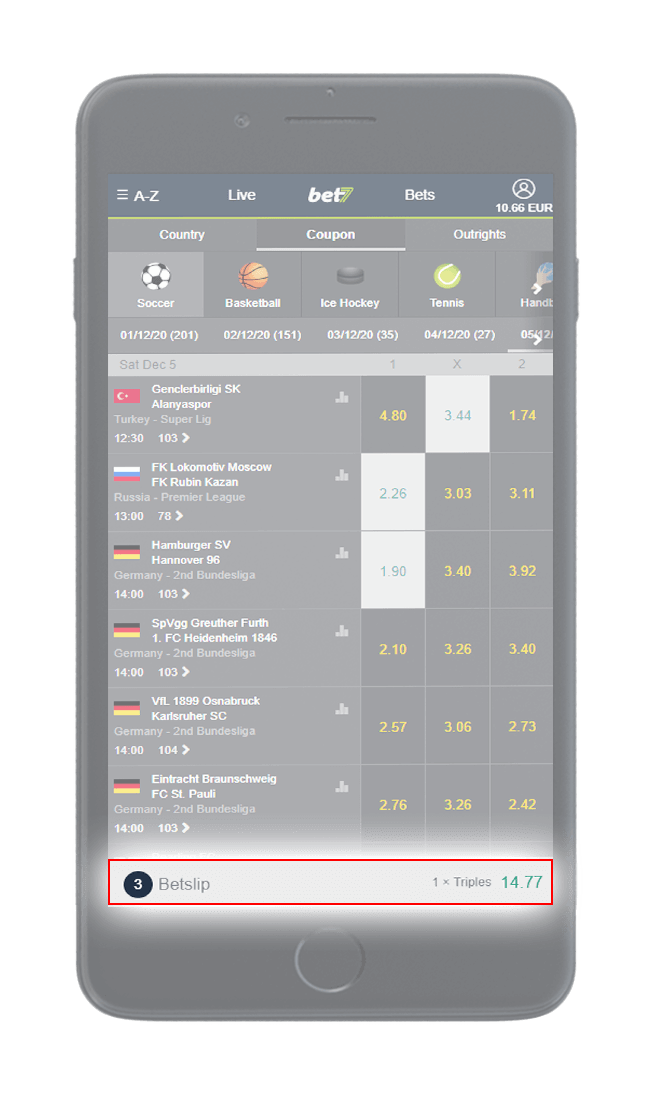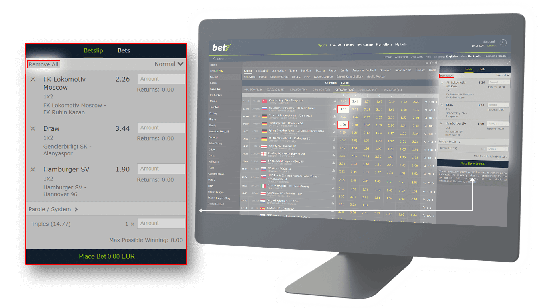 Once you have confirmed your bet by clicking on “Place bet” on the bet slip, you will receive a confirmation of acceptance if the bet has been placed successfully. Each bet that you place will appear in your accounting under “My bets”. In exceptional cases, the bets you place may fail to appear immediately under “My bets”. Please note that a bet, once placed, can no longer be cancelled.