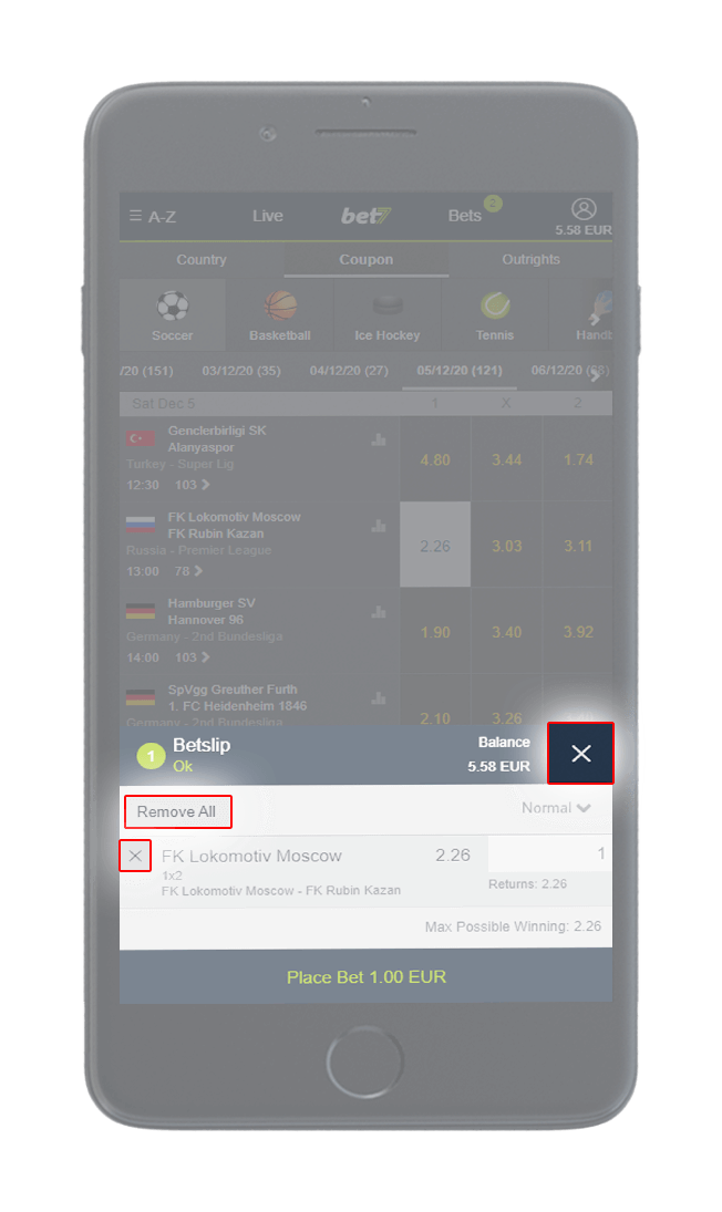 Removing or deselecting a bet from the bet slip is quick and easy.