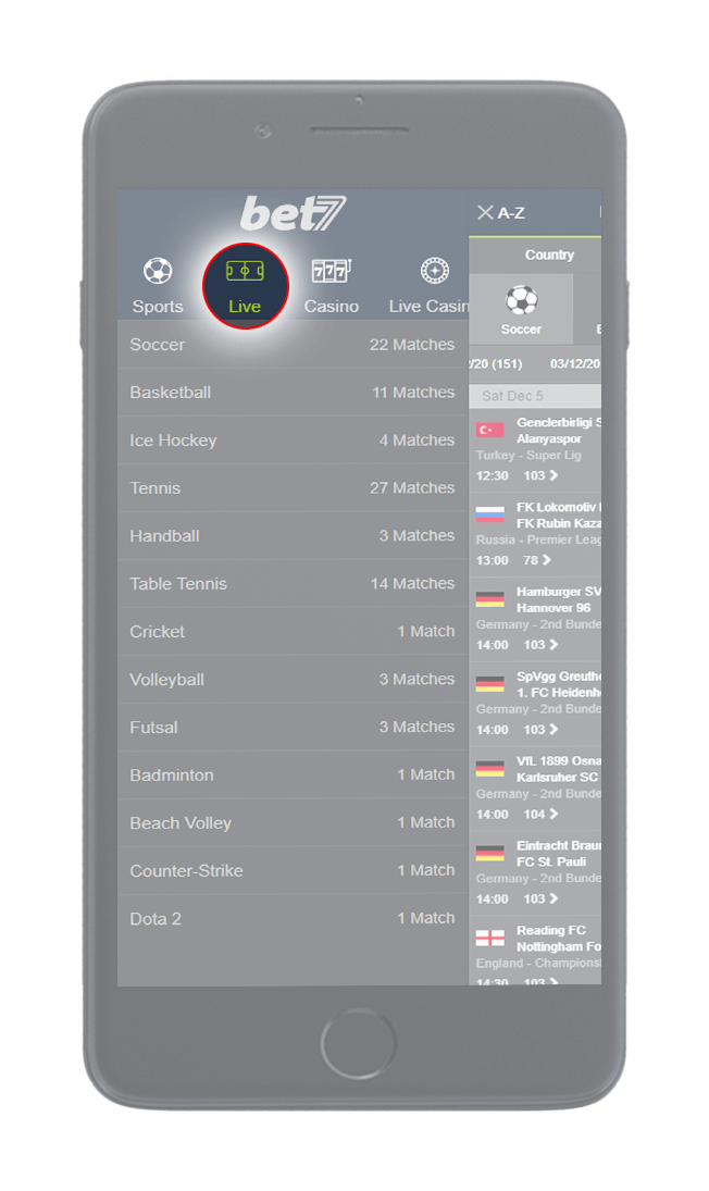 Please note that if any live events exist (i.e. event has already started), the “Live” filter will appear at the top of the page with all leagues (step 4 above). The “Live” filter will contain all games that have already started for the selected country and sport.