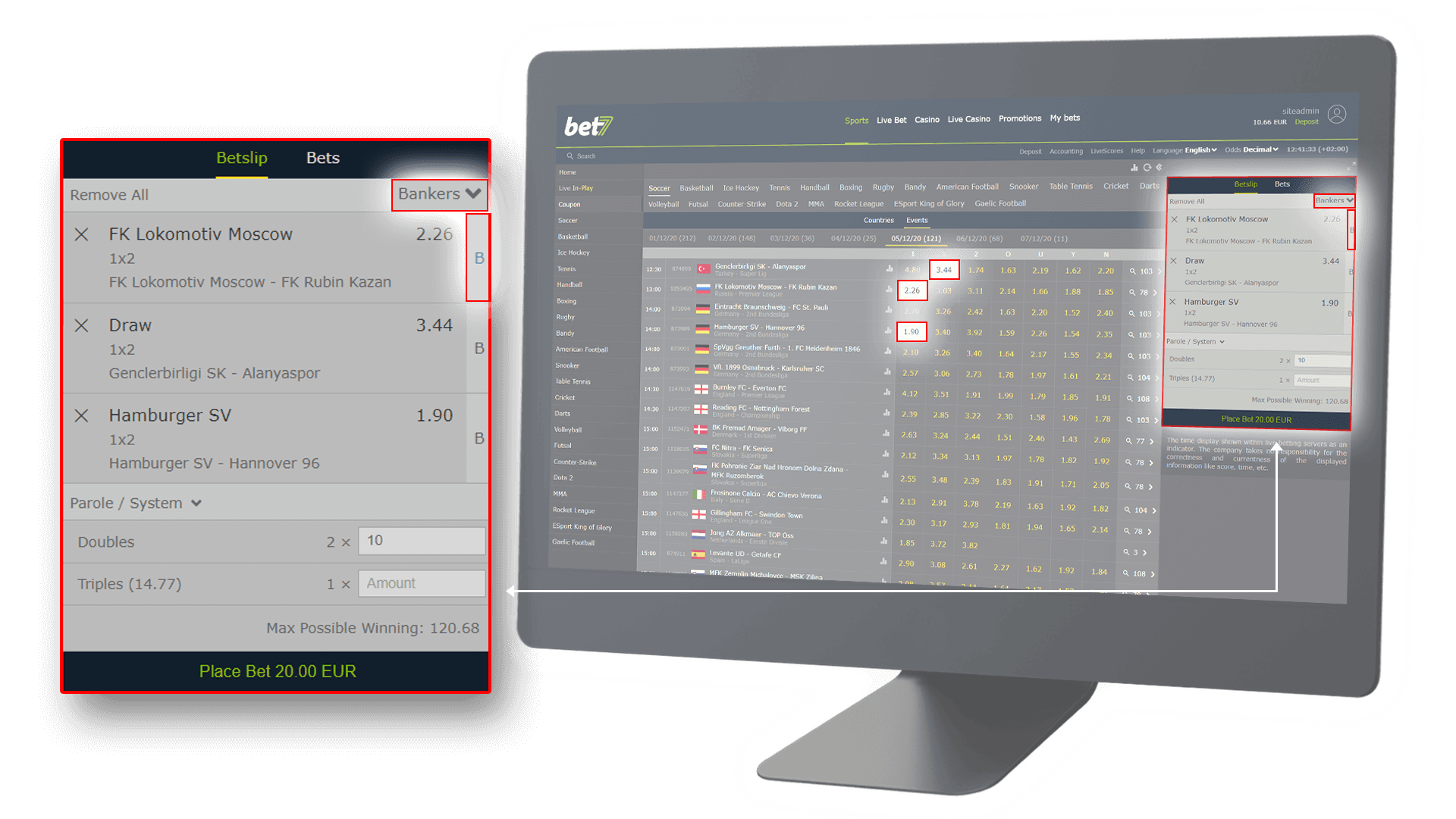 In this case, you win the bet if the banker is right and the corresponding system bet criterion has been satisfied. The amount of the winnings on a system bet with a banker once again depends on how many of your tips are correct. If the banker is incorrect or the system bet criterion is not satisfied, you lose the bet. If you choose a 2/3 system bet with a banker, you win only if two picks of your system bet and your banker are correct. The amount of the winnings depends on the odds of the picks you won. The maximum winnings from your bet (banker correct and all other picks of the system bet are correct) will be displayed to you when you place your bet. It is also possible to include several bankers within a single system bet.